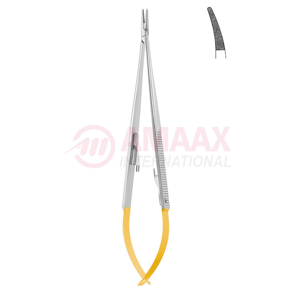 Castroviejo Jacobson Micro Needle Holder Tc With Catch Curved Diamond Coated Jaw