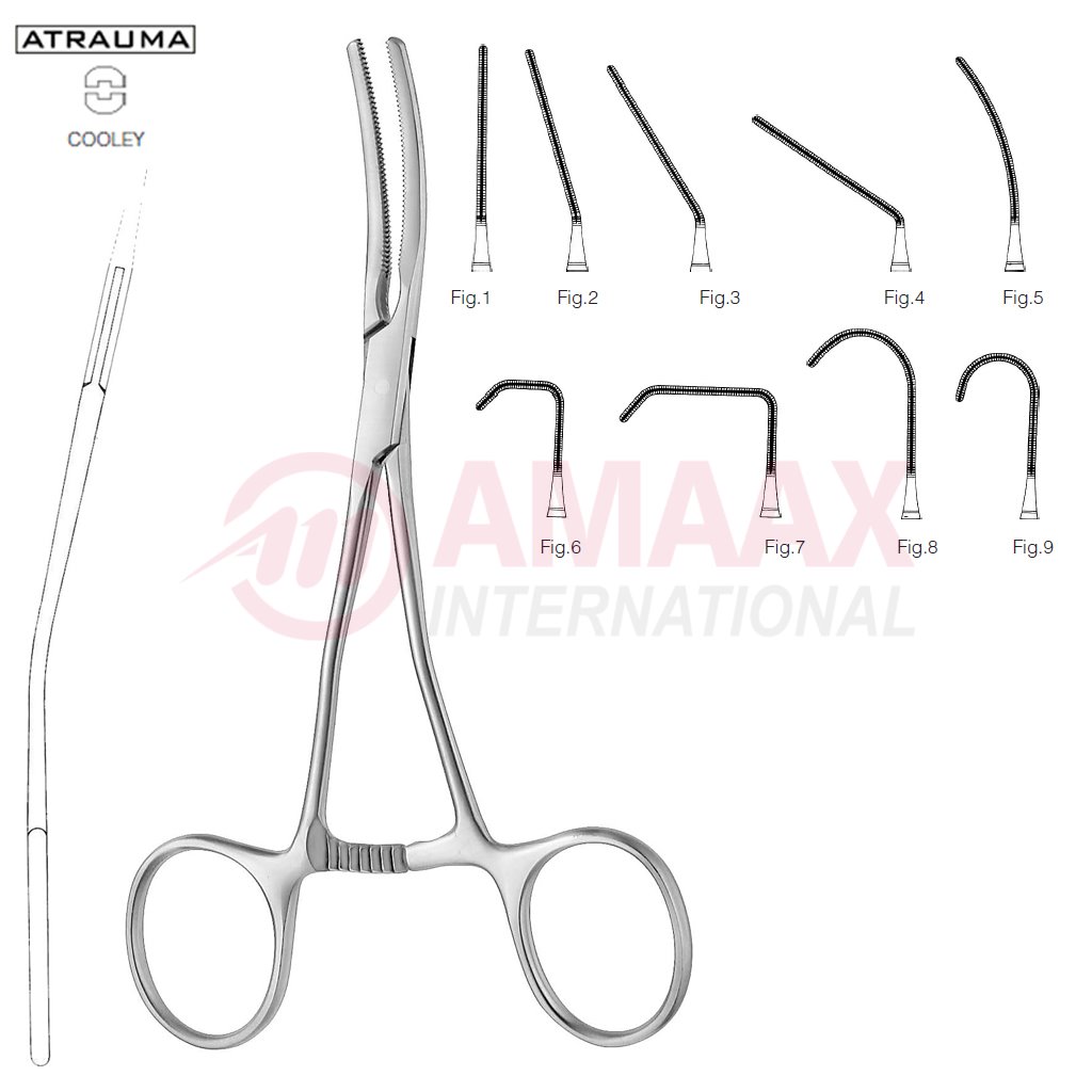 COOLEY Atraumatic Pediatric Clamp No. 9, 13.5cm (5 1/4″), Extra Delicate, Angled Downwards Shanks