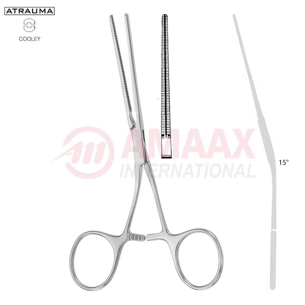 COOLEY ATRAUMATIC Vascular Clamp, Angled, 15 Degree, 125 mm (5″), Toothing COOLEY, Jaw Length: 50 mm