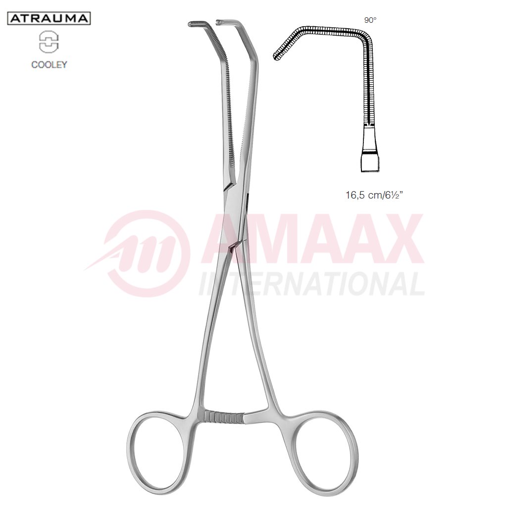 COOLEY ATRAUMATIC Vascular Clamp, Angled, 90 Degree, 160 mm (6 1/4″), Toothing COOLEY, Jaw Length: 46 mm, Width: 25 mm, For Pediatrics
