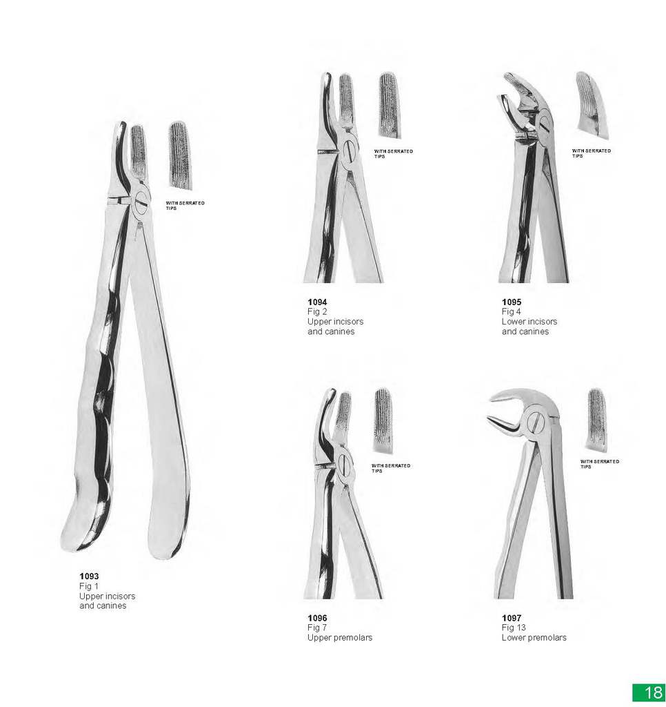 WITH SERRATED WITH SERRATED TIPS TIPS WITH SERRATED TIPS 1094 1095 Fig 2 Upper incisors and canines Fig 4 Lower incisors and canines WITH SERRATED TIPS WITH SERRATED TIPS 1093 Fig 1 Upper incisors and canines 1096 1097 Fig 7 Upper premolars Fig 13 Lower premolars
