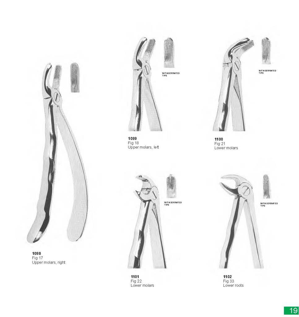 WITH SERRATED WITH SERRATED TIPS TIPS 1099 1100 Fig 18 Fig 21Upper molars, left Lower molars WITH SERRATED WITH SERRATED TIPS TIPS 1098 Fig 17 Upper molars, right 1101 1102 Fig 22 Fig 33 Lower molars Lower roots