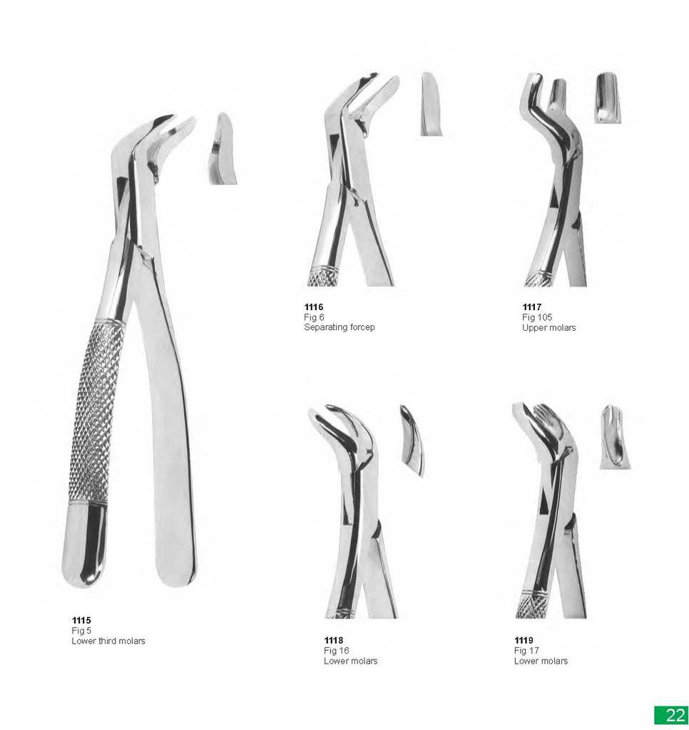 1116 1117 Fig 6 Fig 105 Separating forcep Upper molars 1115 Fig 5 Lower third molars 1118 1119 Fig 16 Fig 17 Lower molars Lower molars