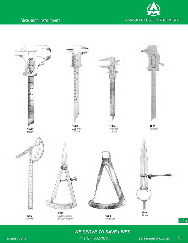 1663 1664 1665 1662 Zuricher Vernier Vernier Boley 130 mm 12 cm 1667 1669 1666 Caroll Castroviejo?s Scleral Marker 1668 Iwanson Albee