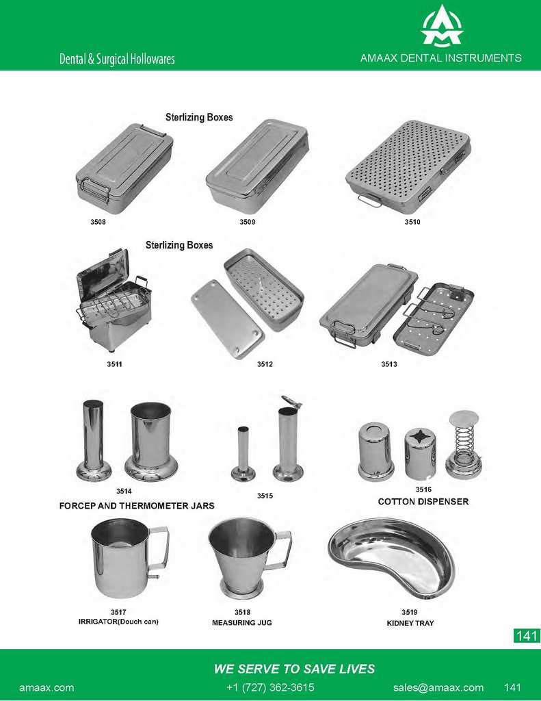 Sterlizing Boxes 3508 3509 3510 Sterlizing Boxes 3511 3512 3513 3516 3514 3515 COTTON DISPENSER FORCEP AND THERMOMETER JARS 3517 3518 3519 IRRIGATOR(Douch can) MEASURING JUG KIDNEY TRAY