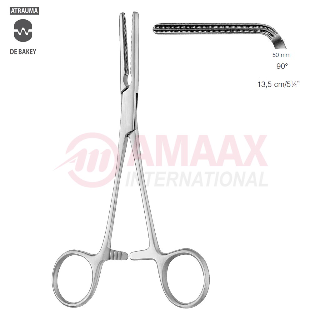 DARDIK Atraumatic Multi-Purpose Vascular Clamp 13.5cm (5 1/4″), 90 Degree Angled, Jaw Length 50,0mm, 2×3 Teeth