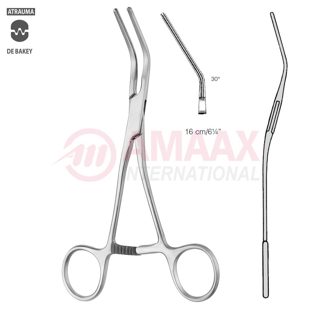 DeBakey Atraumatic Coarctation Clamp 16cm (6 1/4″), 30 Degree Angled