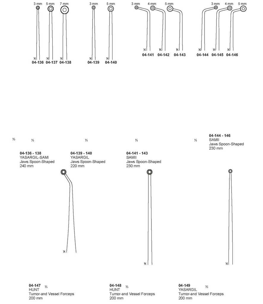 04-136 04-137 04-138 04-139 – 140 YASARGIL Jaws Spoon-Shaped 220 mm 04-139 04-140 04-141 – 143 SAMII Jaws Spoon-Shaped 230 mm 04-141 04-142 04-143 3 mm 5 mm 7 mm 3 mm 5 mm 3 mm 4 mm 5 mm 3 mm 4 mm 5 mm 04-144 – 146 SAMII Jaws Spoon-Shaped 230 mm 04-144…