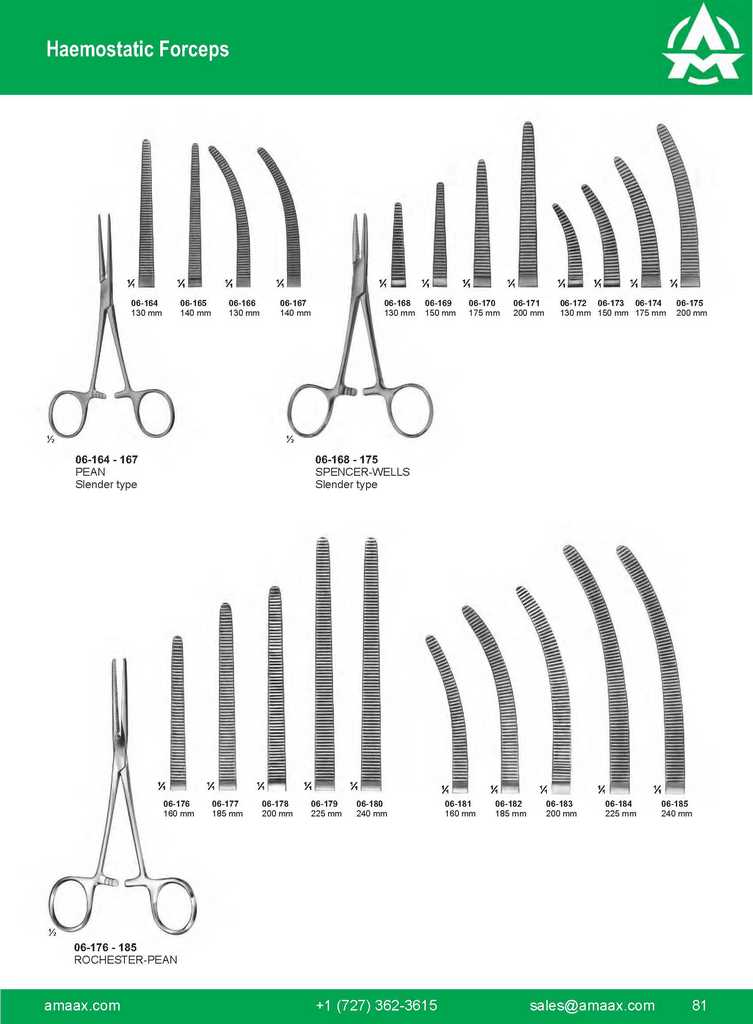 06-156 FRICKE Artery forceps 130 mm 06-158 PEAN 125 mm ? 06-159 – 160 PEAN 06-159 125 mm 06-160 140 mm 06-161 PEAN 06-162 – 163 PEAN 06-162 165 mm 06-163 185 mm ? 06-157 KRONLEIN 130 mm 81