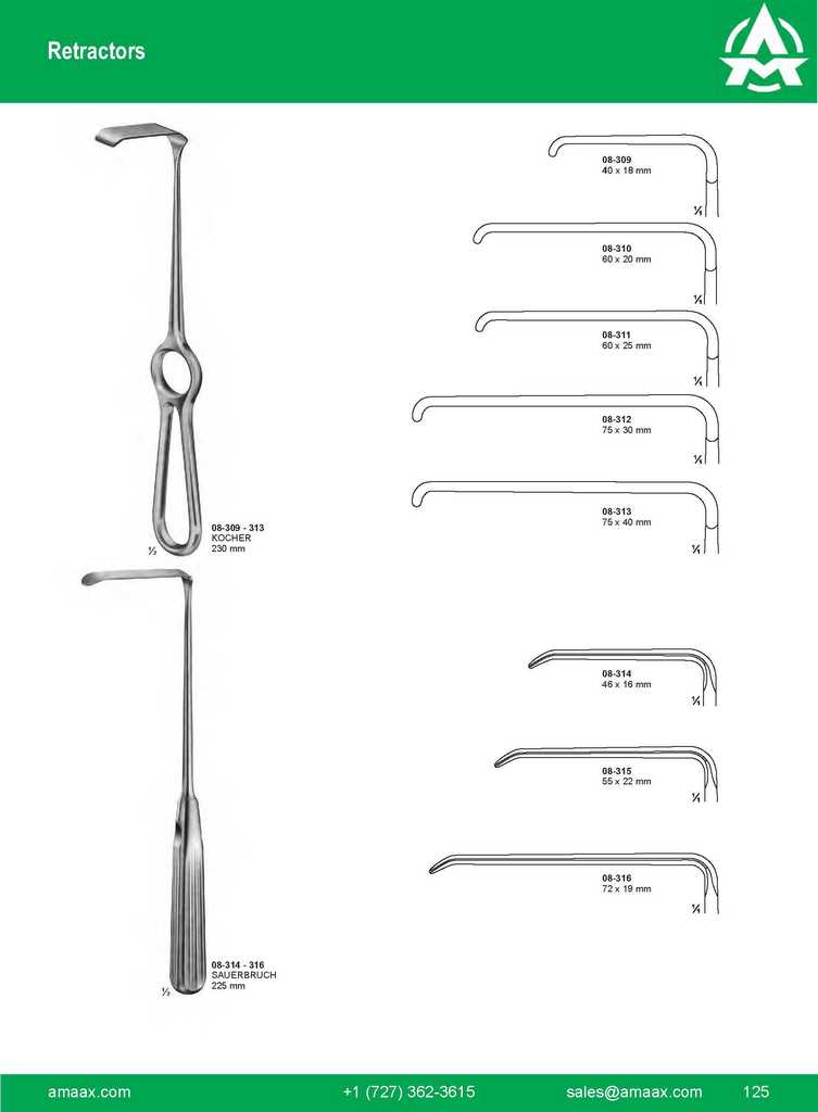 08-267 – 280 VOLKMANN 220 mm 08-267 9 x 8 mm 08-268 9 x 13 mm 08-269 9 x 19 mm 08-270 9 x 29 mm 08-271 9 x 40 mm 08-272 8 x 8 mm 08-273 8 x 13 mm 08-274 8 x 19 mm 08-275 8 x 29 mm 08-276 8 x 40 mm 08-277 8,5 x 8 mm 08-278 8,5 x 13 mm 08-279 8,5 x 19 mm 08-280 8,5 x 29 mm 08-281 – 288 KOCHER ? 220 mm 08-281 16 x 9 mm 08-282 16 x 14 mm 08-283 16 x 20 mm 08-284 16 x 30 mm 08-285 15,5 x 9 mm 08-286 15,5 x 14 mm 08-287 15,5 x 20 mm 08-288 15,5 x 30 mm Sharp Blunt Semi-Sharp Semi-Sharp Blunt INSTRUMENTS R 125