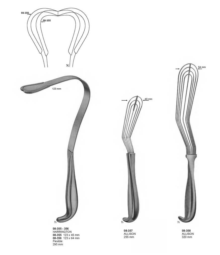 08-355 – 356 HARRINGTON 08-355 123 x 45 mm 08-356 123 x 64 mm Flexible 295 mm 123 mm 08-355 08-356 08-357 ALLISON 255 mm 08-358 ALLISON 320 mm 40 mm 54 mm INSTRUMENTS R