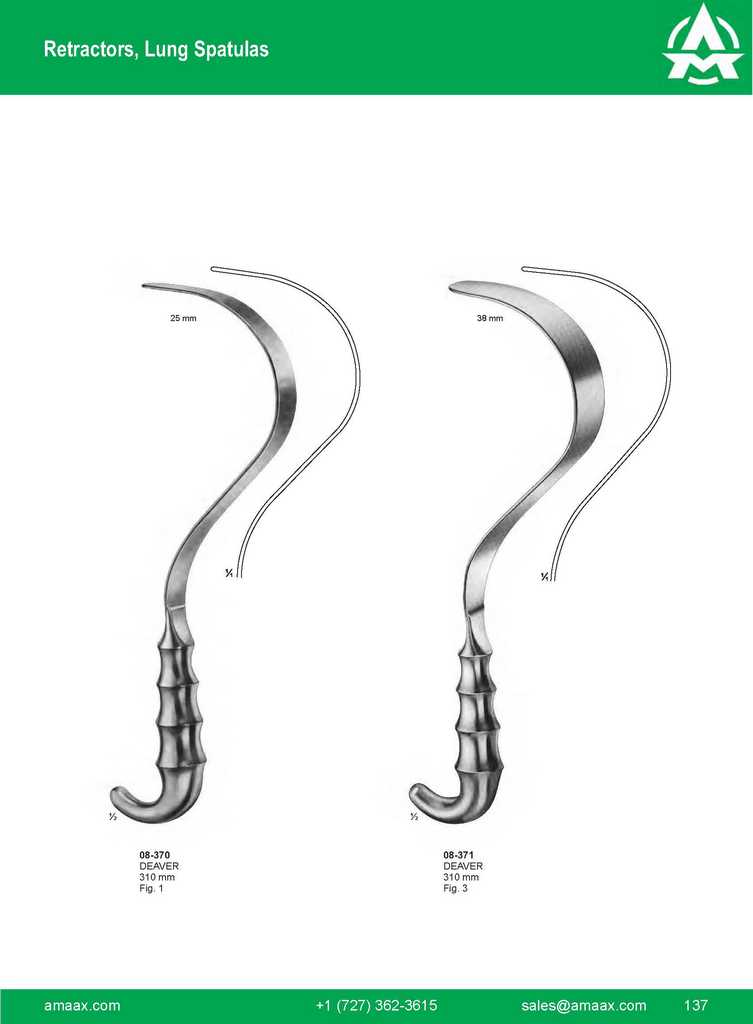 08-359 DAVIDSON Scapula Retractor 195 mm 74 mm 92 mm 08-361 DEAVER 180 mm Fig. 000 19 mm 22 mm 25 mm 08-362 DEAVER 215 mm Fig. 00 08-363 DEAVER 235 mm Fig. 0 08-360 ZENKER 240 mm INSTRUMENTS R 137