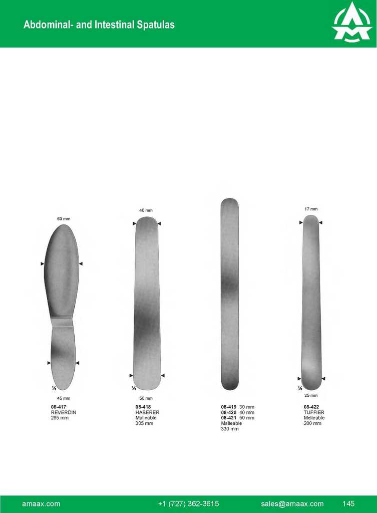 08-397 – 401 ROCHARD 310 mm 08-397 48 x 90 mm 08-398 48 x 105 mm 08-399 48 x 120 mm 08-400 48 x 135 mm 08-401 48 x 155 mm 08-402 08-403 – 406 DOYEN 280 mm 08-403 48 x 90 mm 08-404 48 x 105 mm 08-405 48 x 120 mm 08-406 48 x 135 mm 08-407 DOYEN-CHILD Fixation device 220 mm 08-408 Chain with weight (747 / 645g) 790 mm 145
