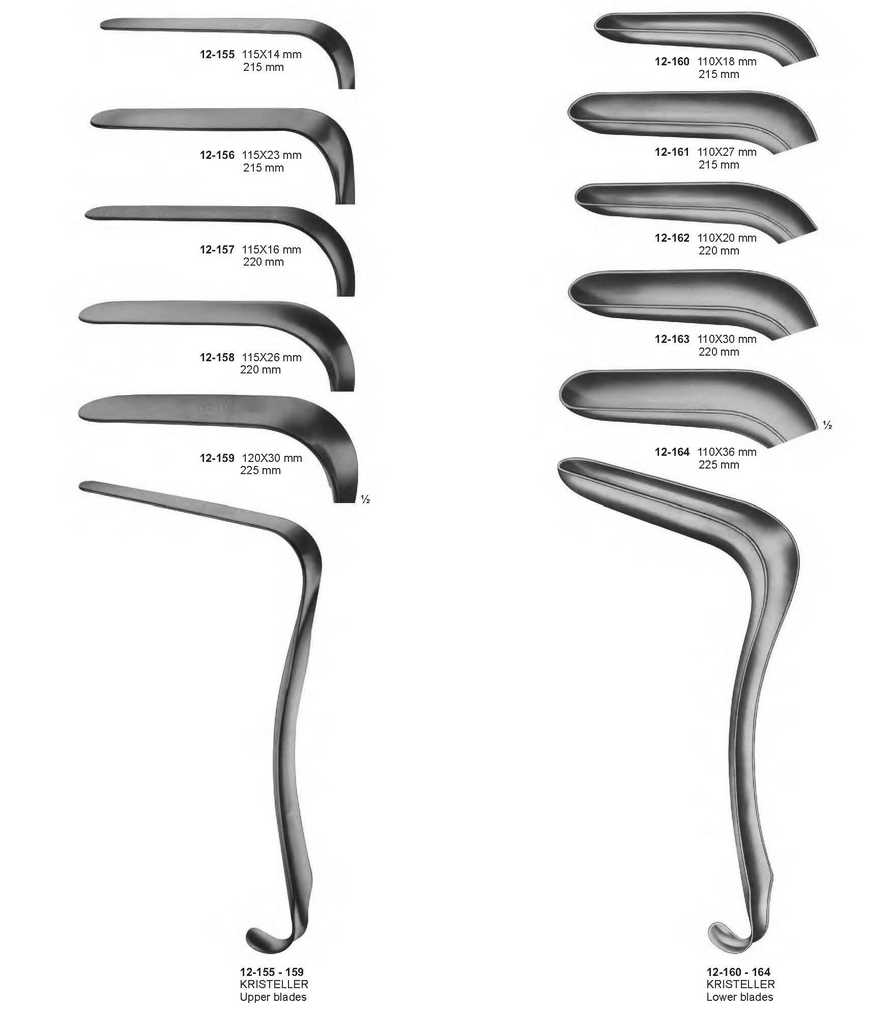 12-155 115X14 mm 215 mm 12-156 115X23 mm 215 mm 12-157 115X16 mm 220 mm 12-158 115X26 mm 220 mm 12-159 120X30 mm 225 mm 12-160 – 164 KRISTELLER Lower blades 12-160 110X18 mm 215 mm 12-161 110X27 mm 215 mm 12-162 110X20 mm 220 mm 12-163 110X30 mm 220 mm 12-164 110X36 mm 225 mm ? INSTRUMENTS R 211
