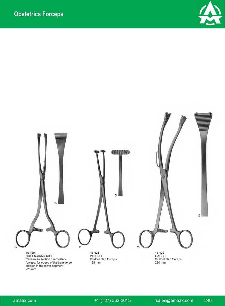 16-109 SCHUMACHER Umbilical cord scissors 155 mm 16-110 Umbilical cord scissors 105 mm 16-111 – 112 BRAUN-STADLER Episiotomy Scissors 16-111 145 mm 16-112 200 mm 16-113 Episiotomy Scissors 240 mm ? INSTRUMENTS R 246