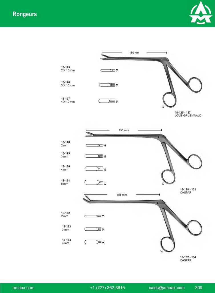 18-104 – 105 KERRISON 90 upwards cutting 85 mm 18-104 4 mm 18-105 5 mm 18-106 – 107 HAJEK-KOFLER 90 upwards cutting 140 mm 18-106 3,3 mm 18-107 4,0 mm INSTRUMENTS R 309