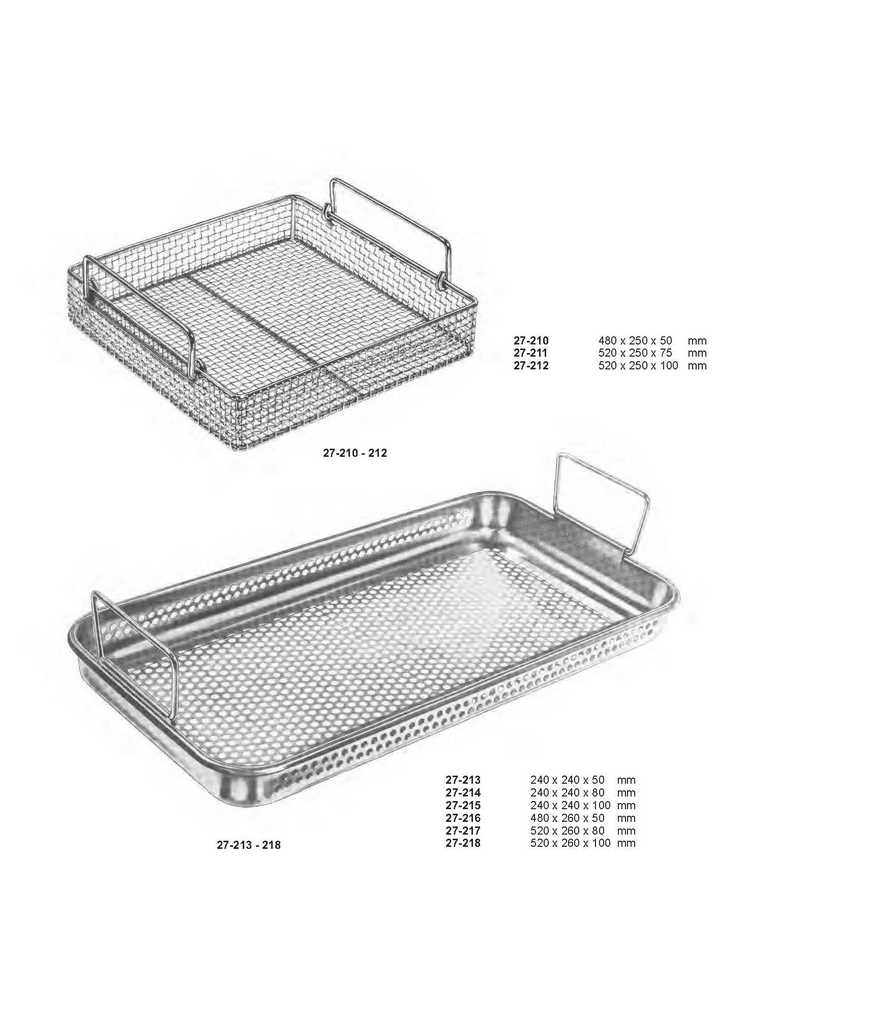 27-210 – 212 27-213 27-214 27-215 27-216 27-217 27-218 240 x 240 x 50 mm 240 x 240 x 80 mm 240 x 240 x 100 mm 480 x 260 x 50 mm 520 x 260 x 80 mm 520 x 260 x 100 mm 27-210 27-211 27-212 480 x 250 x 50 mm 520 x 250 x 75 mm 520 x 250 x 100 mm 27-213 – 218 Sterilizing Baskets / Trays INSTRUMENTS R 426