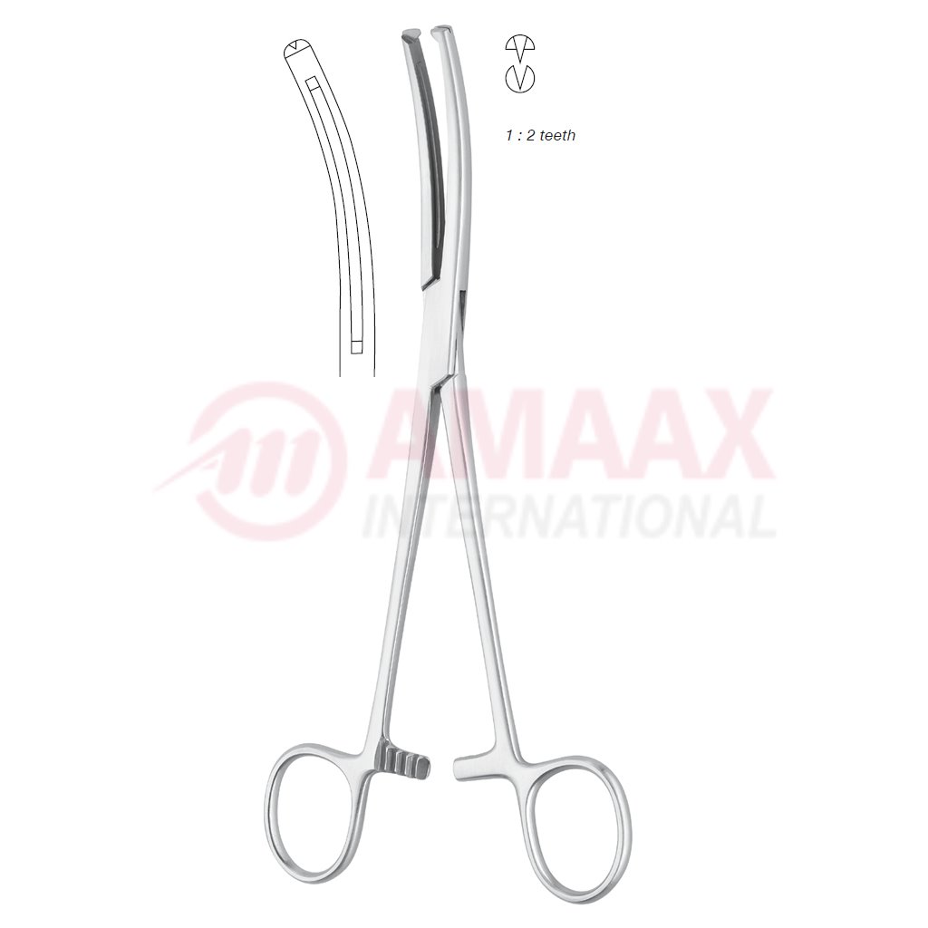 Maingot Hysterectomy Forceps Curved 1×2 Teeth 20cm