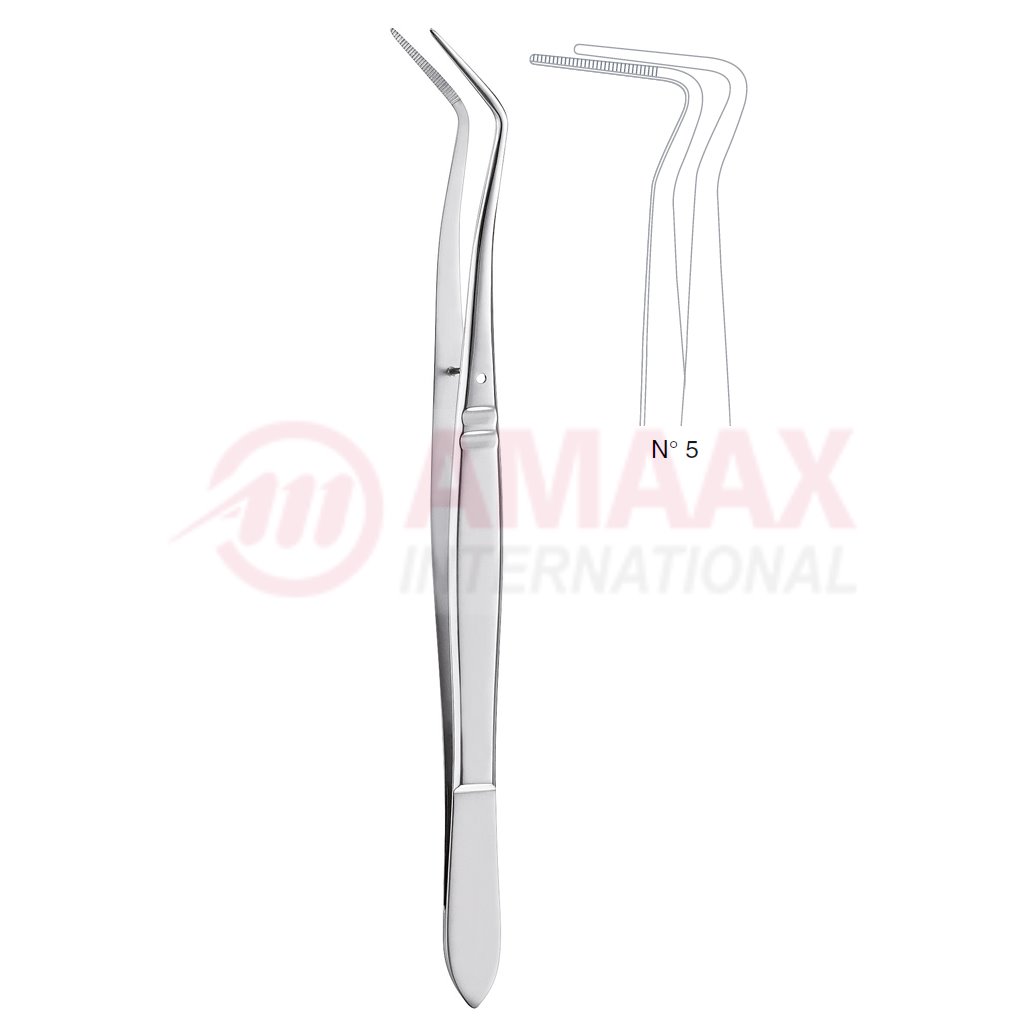 Meriam Dental Tweezer Fig.5, 16cm (6 1/4″), Angled, Smooth Handle With Recess