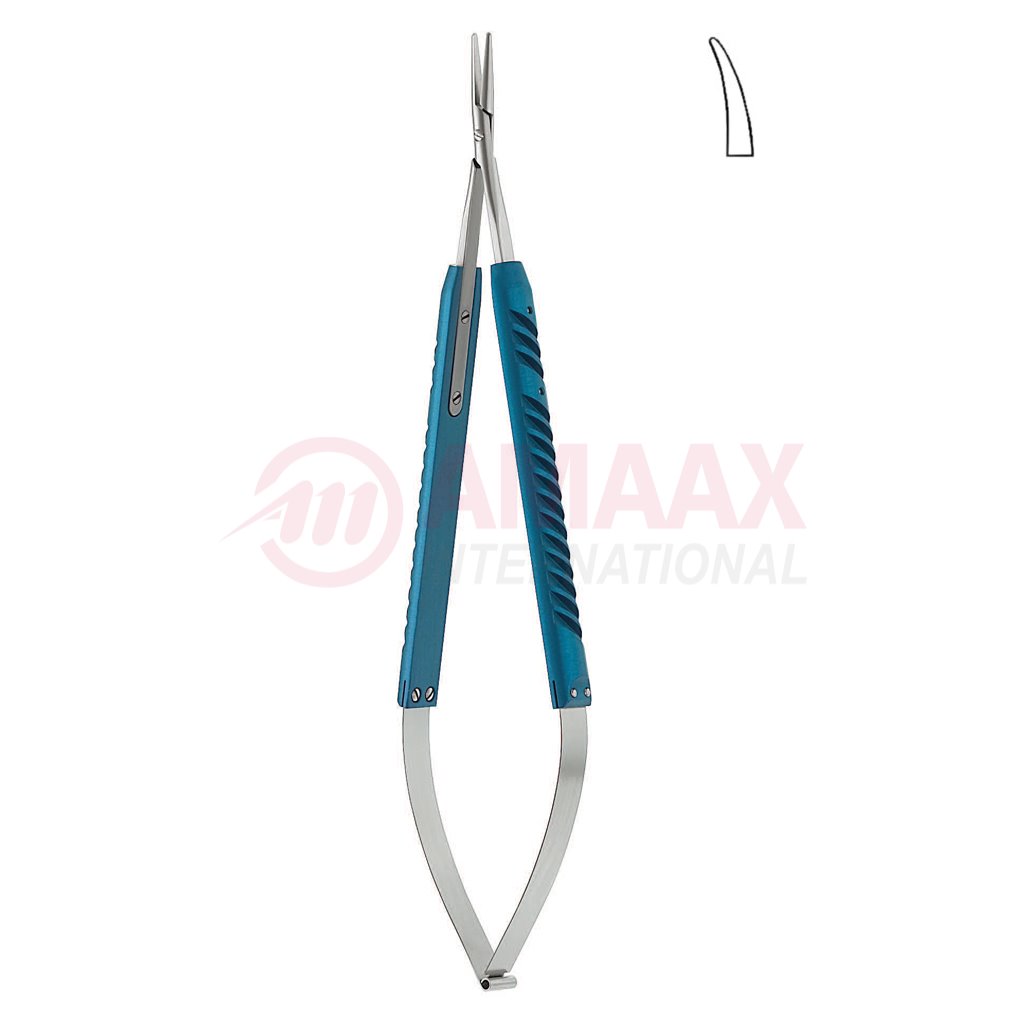 Micro Needle Holder Light Weight With Blue Colored Anodized Curved With Catch 18cm