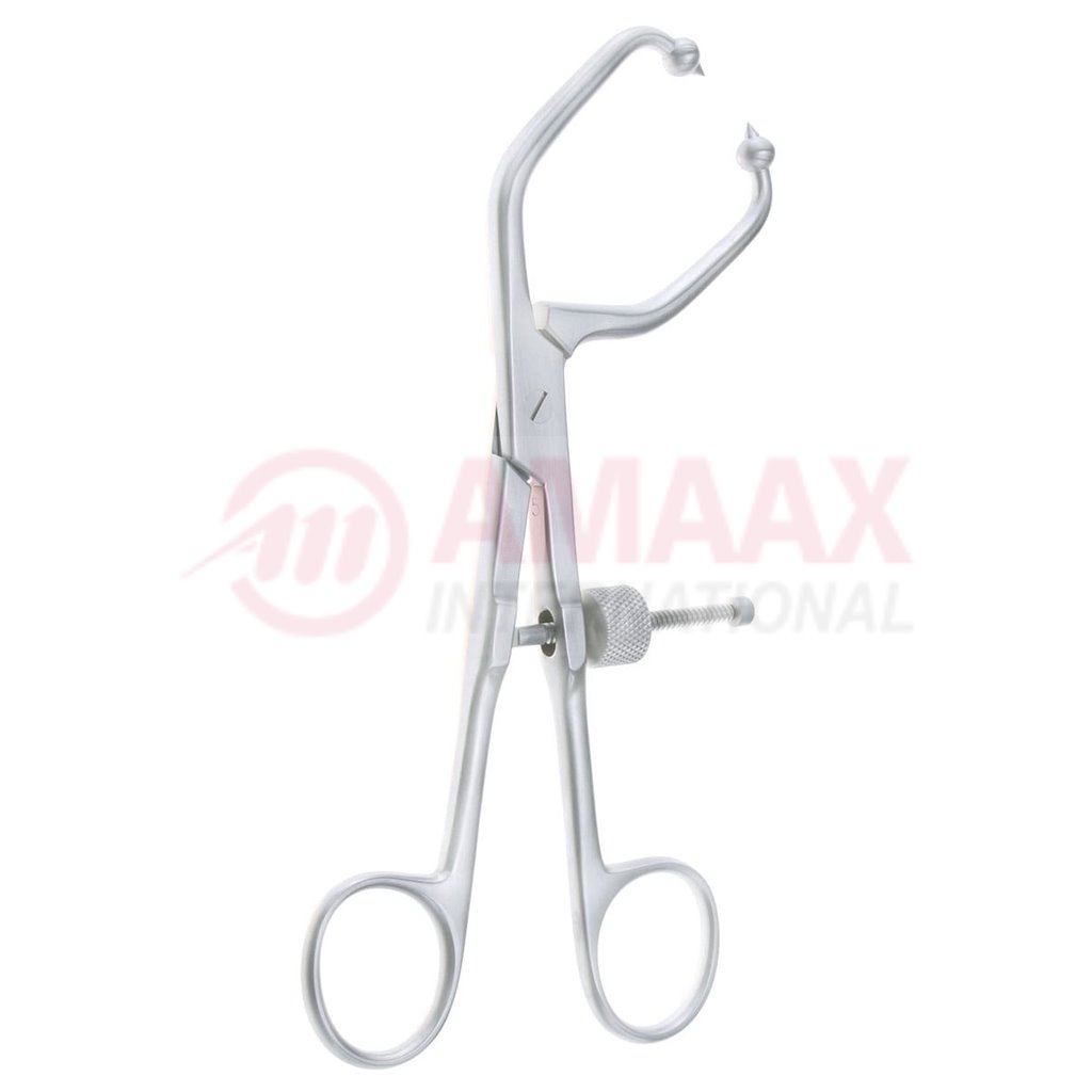 Pelvic Reduction Forceps Curved Sideways With Short Pointed Ball-Tips Ring Handle