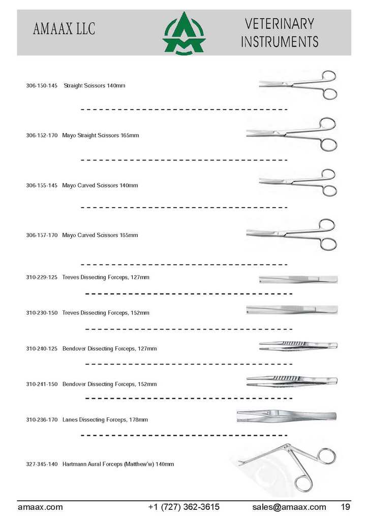 306-150-145 Straight Scissors 140mm 306-152-170 Mayo Straight Scissors 165mm 306-155-145 Mayo Curved Scissors 140mm 306-157-170 Mayo Curved Scissors 165mm 310-229-125 Treves Dissecting Forceps, 127mm 310-230-150 Treves Dissecting Forceps, 152mm 310-240-125 Bendover Dissecting Forceps, 127mm 310-241-150 Bendover Dissecting Forceps, 152mm 310-286-170 Lanes Dissecting Forceps, 178mm 327-345-140 Hartmann Aural Forceps (Matthew?w) 140mm