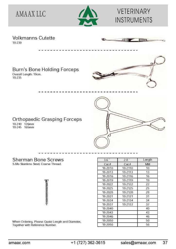 volkmann curette 18-230 Burn?s Bone Holding Forceps Overall Length: 18cm. 18-235 Orthopaedic Grasping Forceps 18-240 126mm 18-245 165mm Sherman Bone Screws S.Mo Stainless Steel, Coarse Thread. 3.6 ? 2.8 ? Length Cat # Cat # MM 18-2010 18-2110 10 18-2013 18-2113 13 18-2016 18-2116 16 18-2019 18-2119 19 18-2022 18-2122 22 18-2025 18-2125 25 18-2028 18-2128 28 18-2031 18-2131 31 18-2034 18-2134 34 18-2037 18-2137 37 18-2040 40 18-2043 43 18-2046 46 18-2050 50 18-2056 56 When Ordering, Please Quote Length and Diameter, Together with Reference Number.