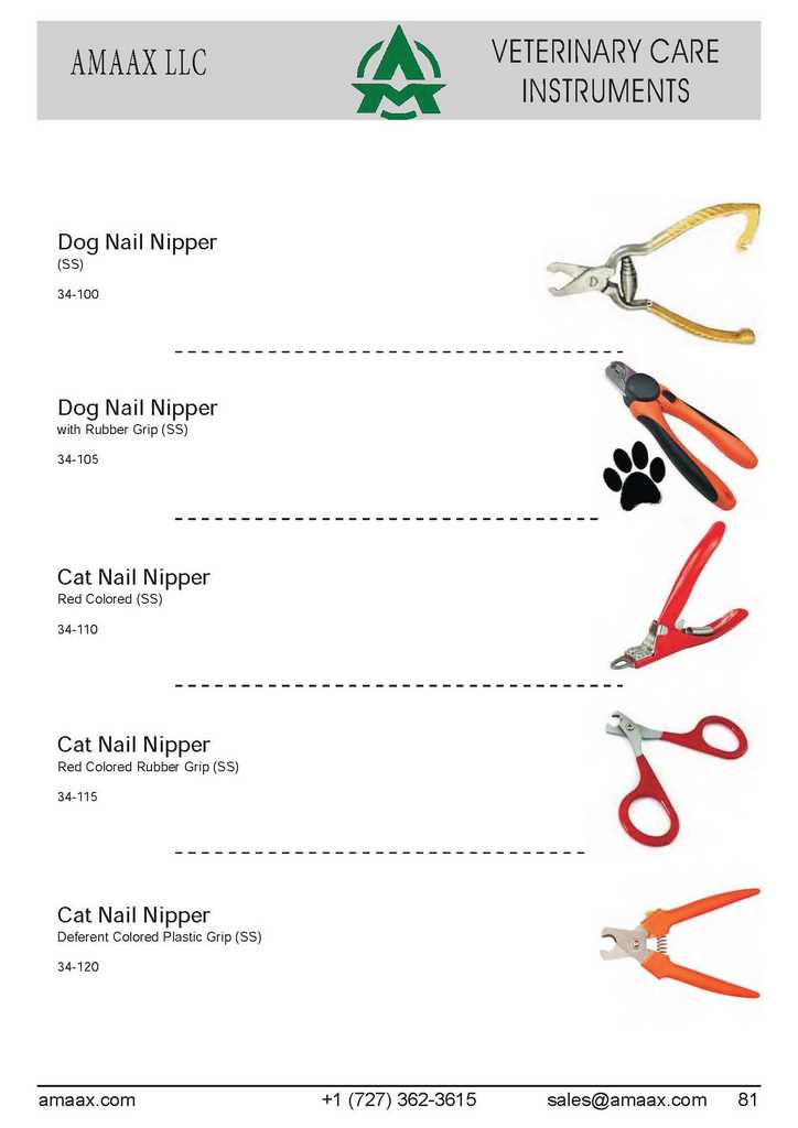 Dog nail nipper ss 34-100 dog nail nipper with rubber grip ss 34-105 cat nail nipper red colored ss 34-110 cat nail nipper red colored rubber grip ss 34-115 cat nail nipper different colored plastic grip ss 34-120