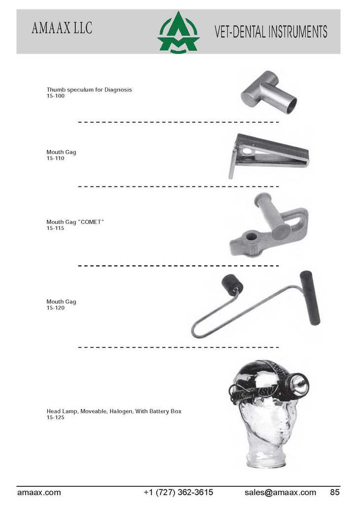 Thumb speculum for Diagnosis 15-100 Mouth Gag 15-110 Mouth Gag ?COMET? 15-115 Mouth Gag 15-120 Head Lamp, Moveable, Halogen, With Battery Box 15-125