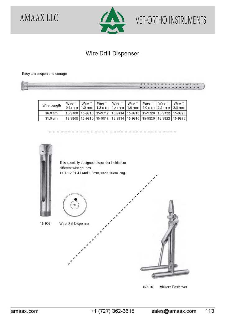 Wire Drill Dispenser Easy to transport and storage Wire Length Wire ? 0.8 mm Wire ? 1.0 mm Wire ? 1.2 mm Wire ? 1.4 mm Wire ? 1.6 mm Wire ? 2.0 mm Wire ? 2.2 mm Wire ? 2.5 mm 16.0 cm 15-9708 15-9710 15-9712 15-9714 15-9716 15-9720 15-9722 15-9725 31.0 cm 15-9808 15-9810 15-9812 15-9814 15-9816 15-9820 15-9822 15-9825 15-905 Wire Drill Dispenser 15-910 Vickers Easidriver