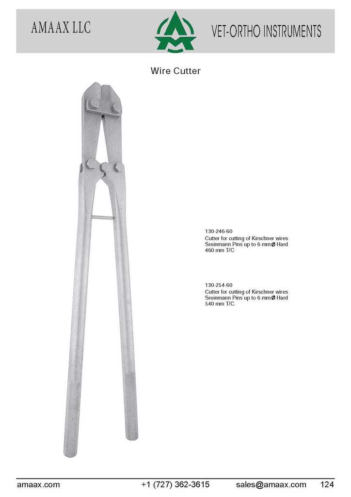 Wire Cutter 130-246-60 Cutter for cutting of Kirschner wires Sreinmann Pins up to 6 mm Hard 460 mm T/C 130-254-60 Cutter for cutting of Kirschner wires Sreinmann Pins up to 6 mm Hard 540 mm T/C