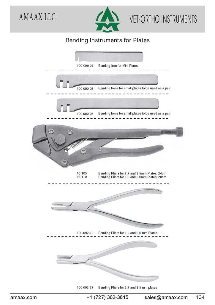 Bending Instruments for Plates 100-090-01 Bending Iron for Mini Plates 100-090-02 Bending Irons for small plates to be used as a pair 100-090-03 Bending Irons for small plates to be used as a pair 16-105 Bending Pliers for 2.7 and 3.5mm Plates, 24cm 16-110 Bending Pliers for 1.0 and 2.0mm Plates, 20cm 100-092-15 Bending Pliers for 1.5 and 2.0 mm Plates 100-092-27 Bending Pliers for 2.7 and 3.5 mm plates