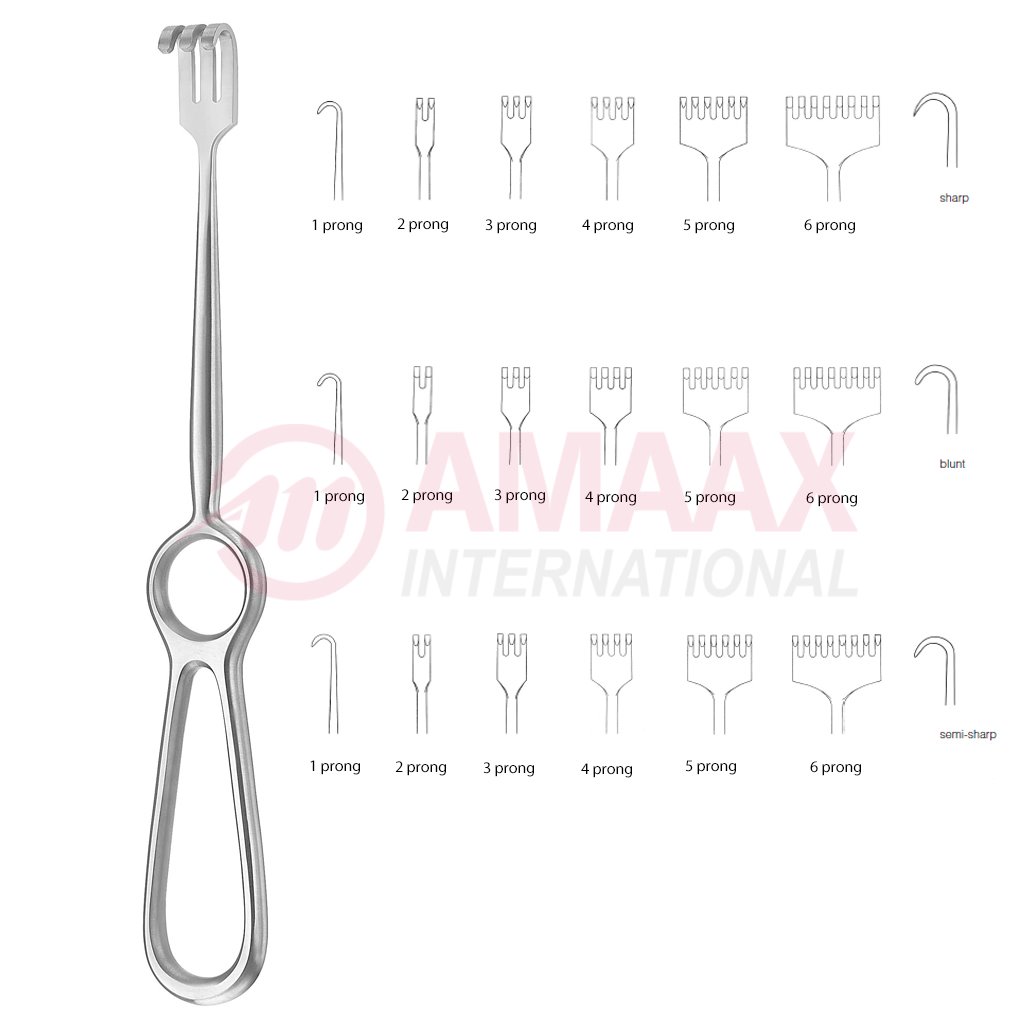 Volkmann Retractor 21.5cm Semi-Sharp 6 Prong